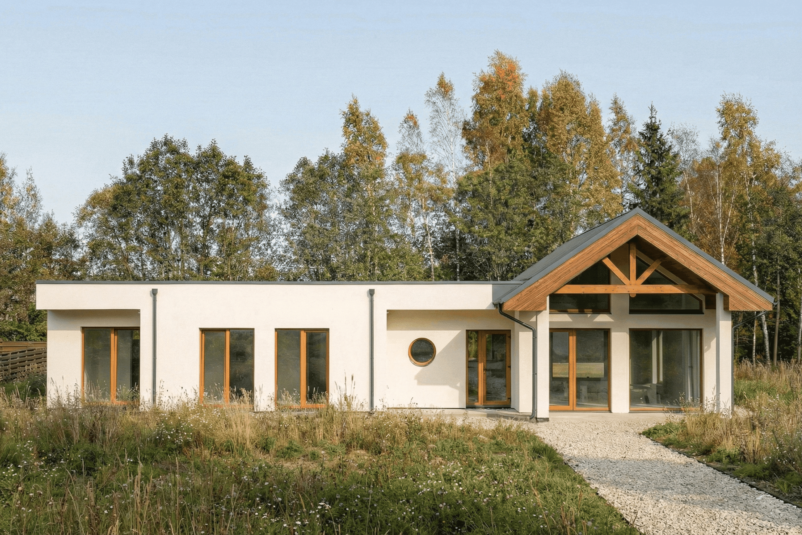 Klientas kreipėsi jau turėdamas statybos leidimą ir architektūrinį projektą – dvibutį namą išskirtinėje vietoje, su vaizdu į ežerą. Sklypas įspūdingas, sprendimai – apgalvoti, su potencialu tapti išskirtiniu būstu dviem šeimoms.